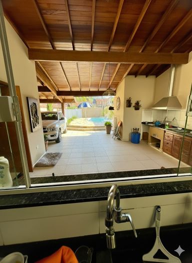 AMPLA ÁREA DE LAZER COM CHURRASQUEIRA E PISCINA
